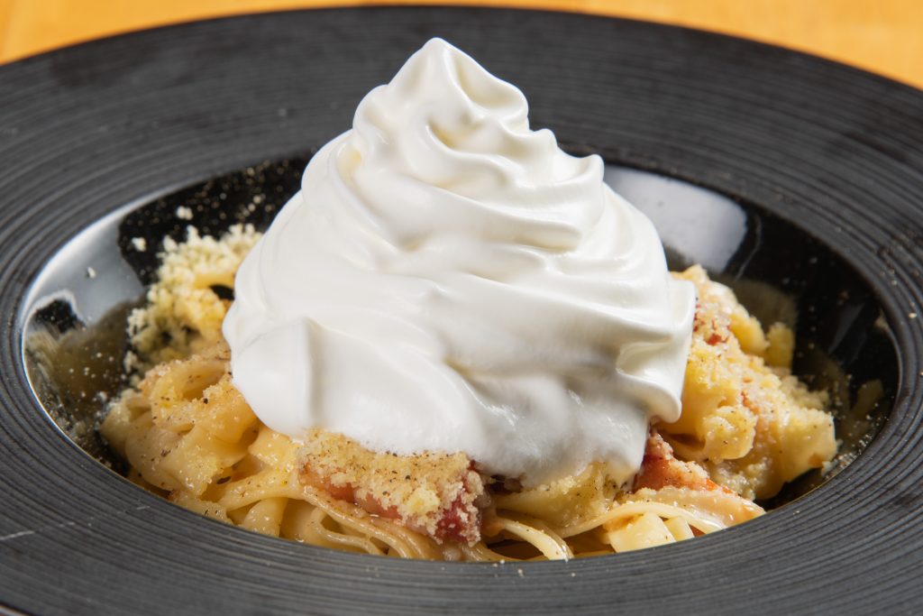エスプーマを使ったカルボナーラや、自家製のローストビーフをたっぷり使ったカルボナーラ♪