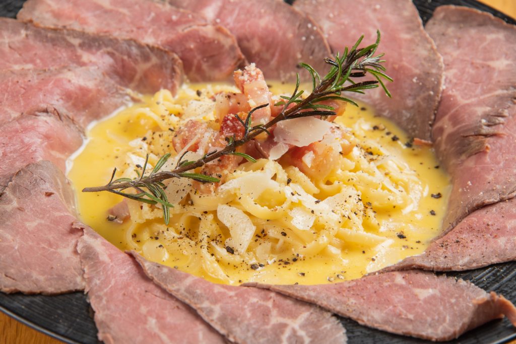 エスプーマを使ったカルボナーラや、自家製のローストビーフをたっぷり使ったカルボナーラ♪
