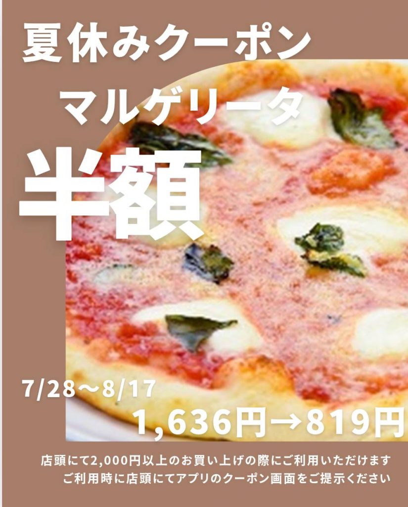 🍕【夏休み限定クーポン】マルゲリータが半額!🍕